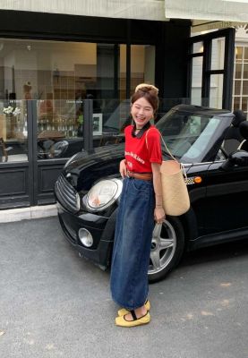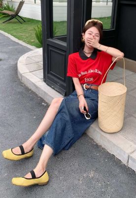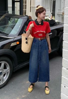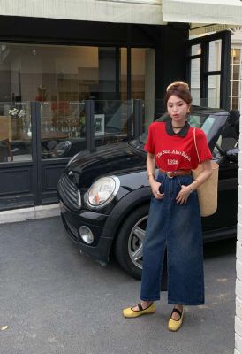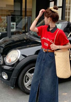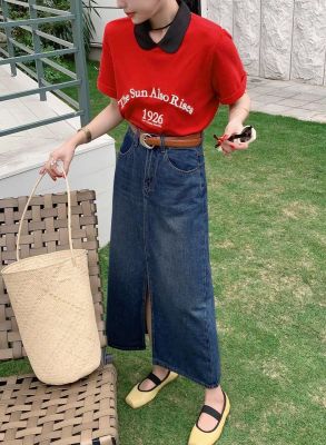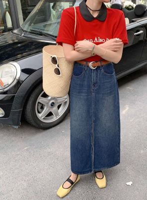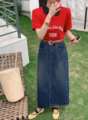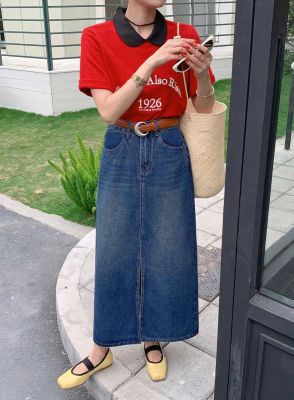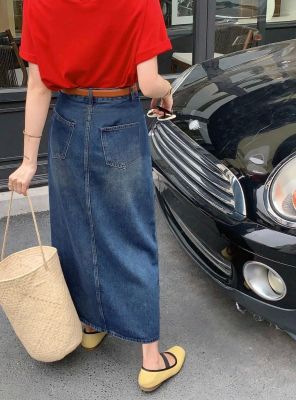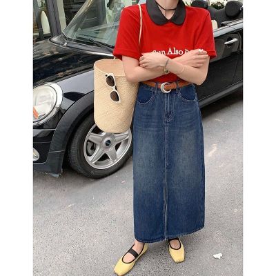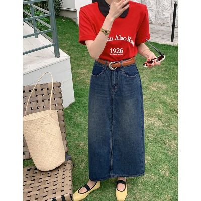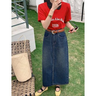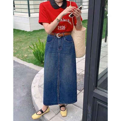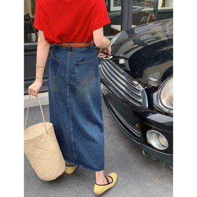 All-match casual denim half-length long skirt for women in spring and summer new high-waisted meat-covered slit A-line long denim skirt trendy