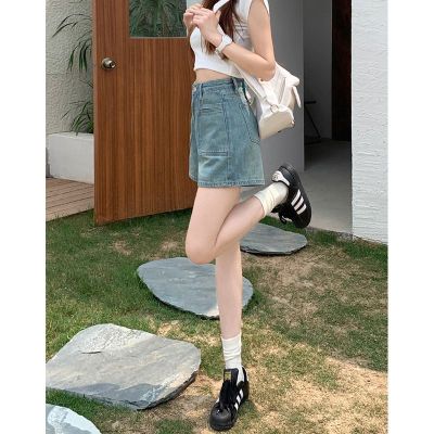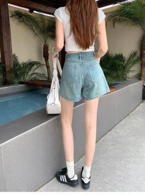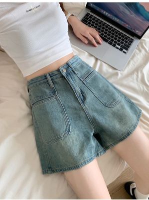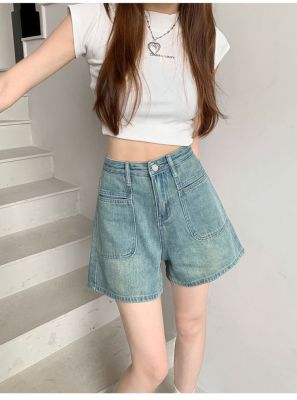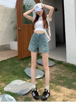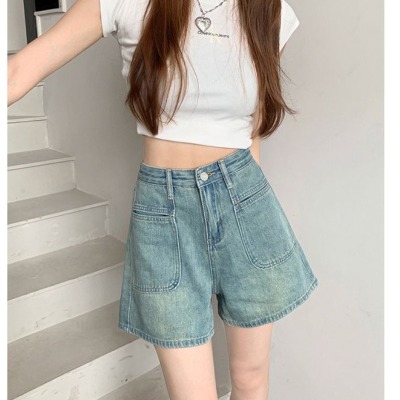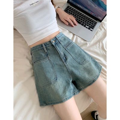 versatile high-waist denim shorts for women in spring and summer new design pockets to make them look slim and loose wide-leg straight-leg denim hot pants