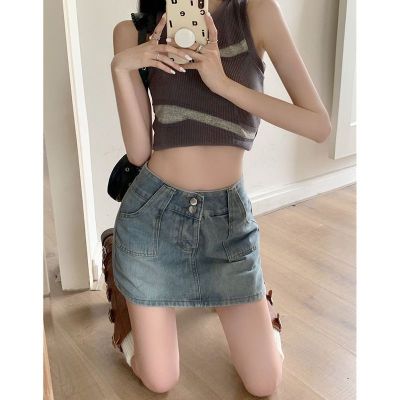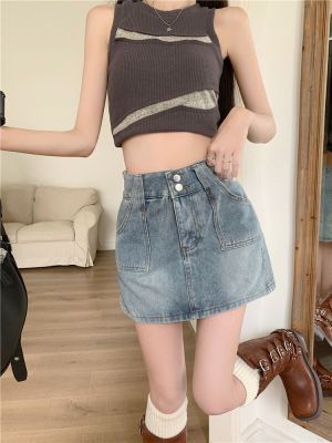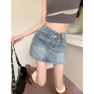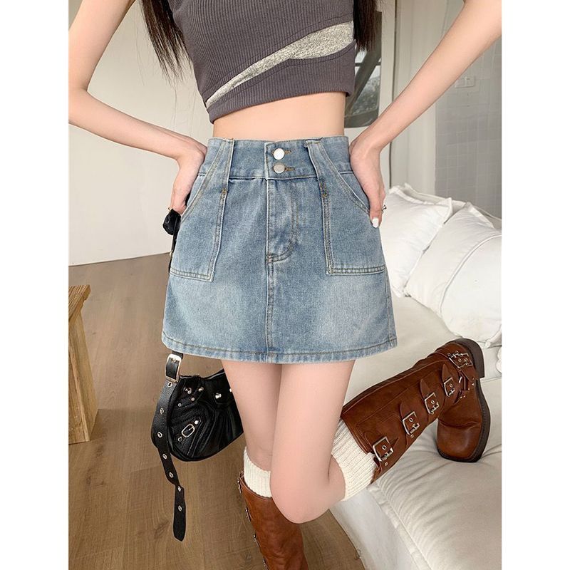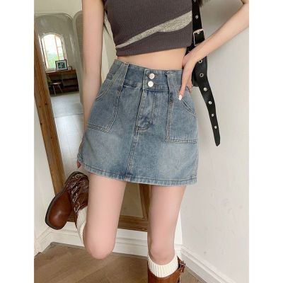 Hot girl retro ins denim skirt skirt women spring and summer new high-waist slim hip A-line denim skirt