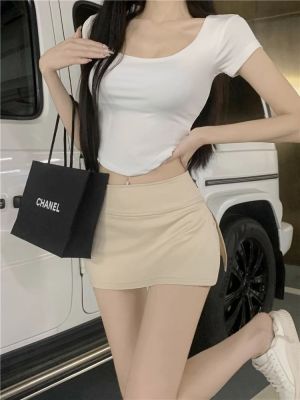 Design niche side slit high waist skirt for women American fashion casual A-line anti-exposure short skirt ins