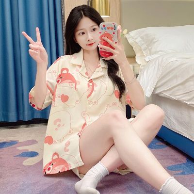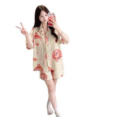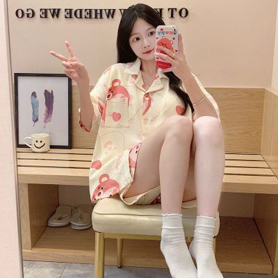 Summer imitation cotton men's round neck short sleeve shorts pajamas men's suit casual home clothes