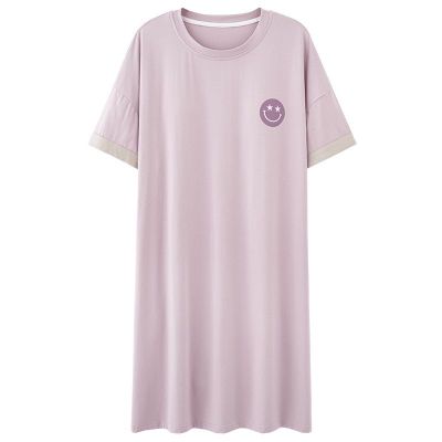 Summer pure cotton round neck short-sleeved nightgown for women casual home clothes wearing loose skirt Korean style