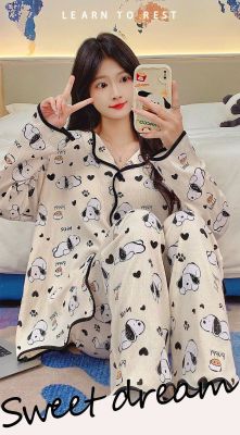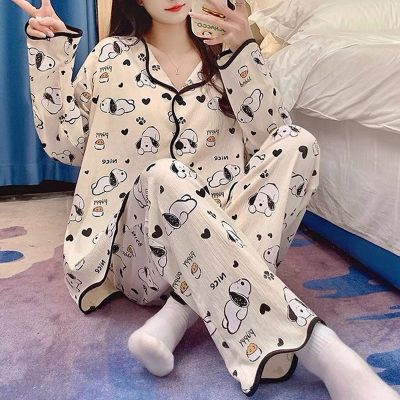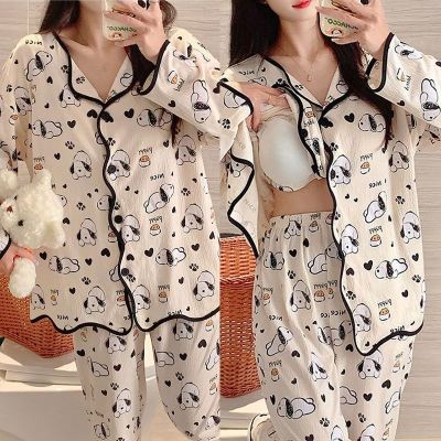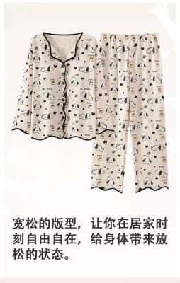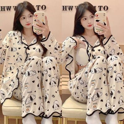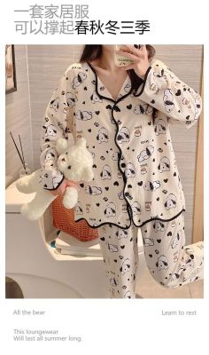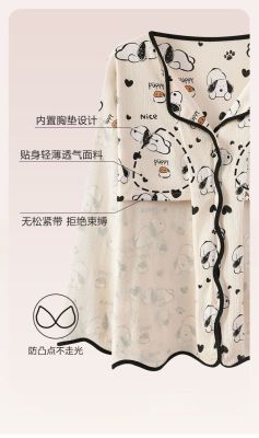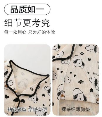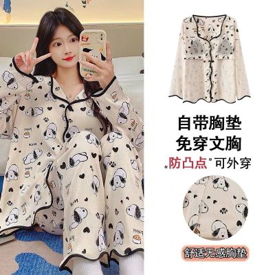 New cardigan with chest pad in spring and autumn, small fragrance style cartoon long-sleeved pajamas for women, sweet home clothes for women, can be worn outside