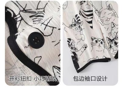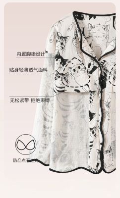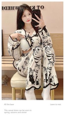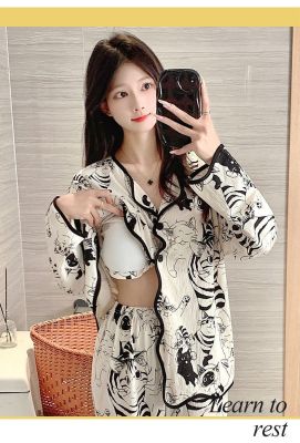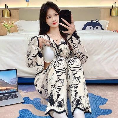 New cardigan with chest pad in spring and autumn, small fragrance style cartoon long-sleeved pajamas for women, sweet home clothes for women, can be worn outside