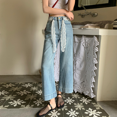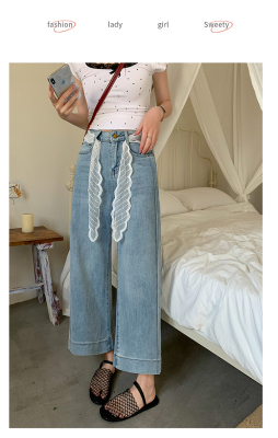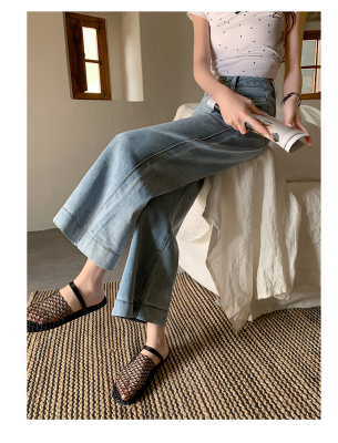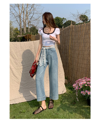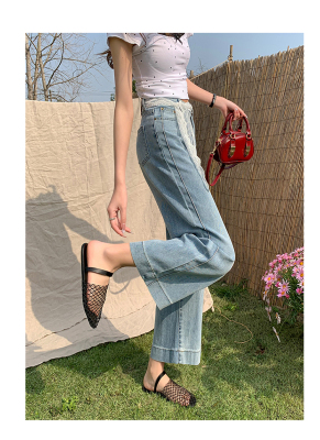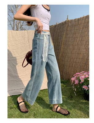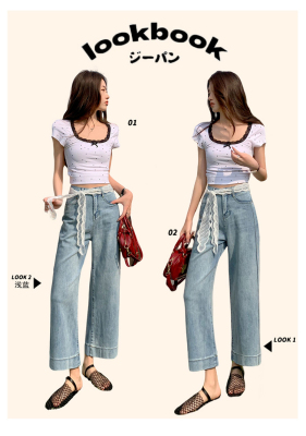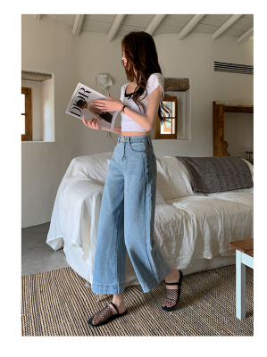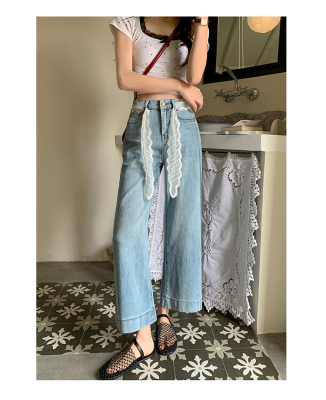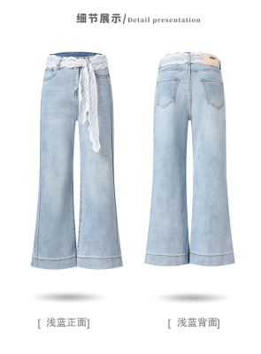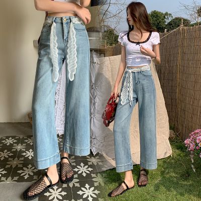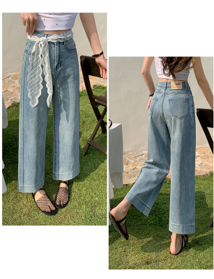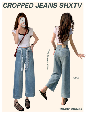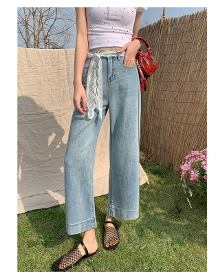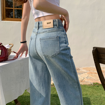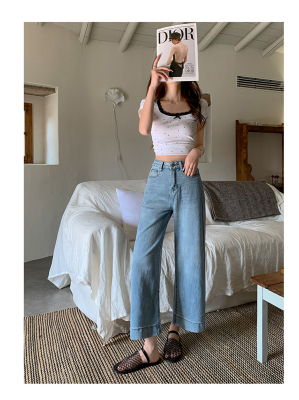 High-waisted straight jeans for women, slim and loose 2025 spring and summer new nine-point small white baguette cigarette pants