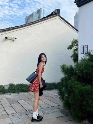 Red retro floral suspender dress for women in summer new style tea series pure French temperament V-neck Hong Kong style short skirt