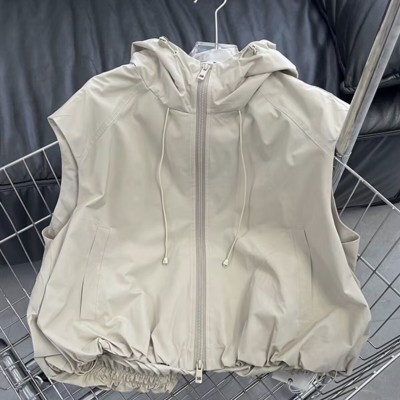 European Station 2025 Spring and Autumn New European Product Fashionable and Versatile Short Horse Clip Hooded Solid Color Fashion Vest Vest Vest Vest Vest Vest