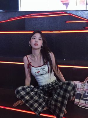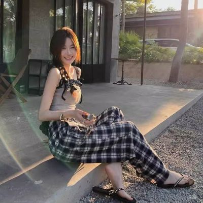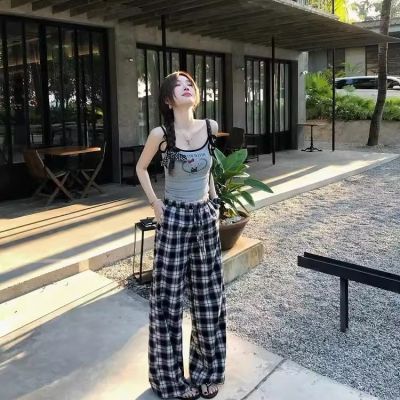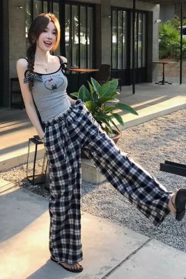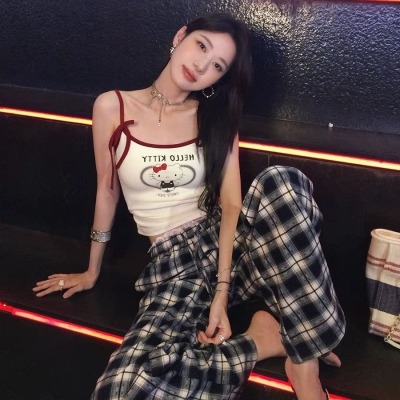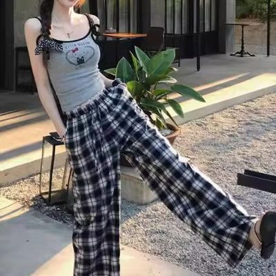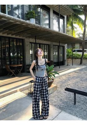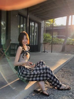 Scottish town, crumpled lace, early spring vintage plaid pants