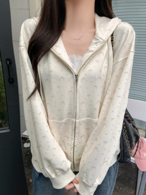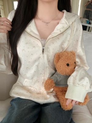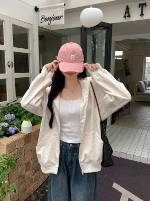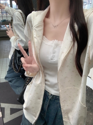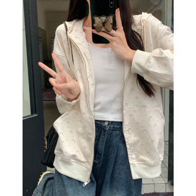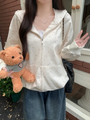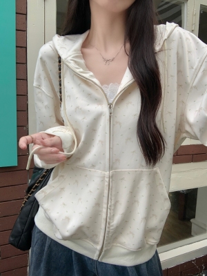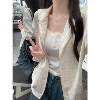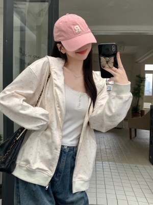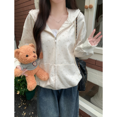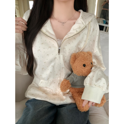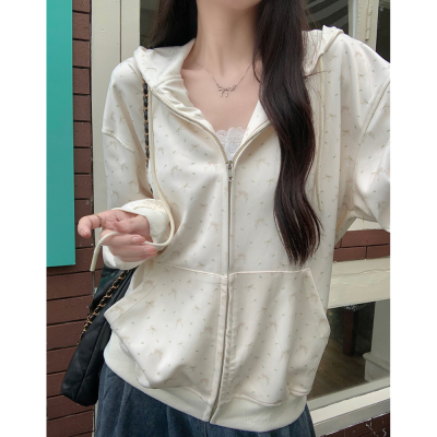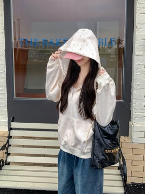 Real photo of Huamian Combination 2025 spring sweatshirt women hooded floral cardigan jacket women loose