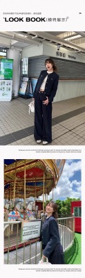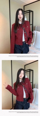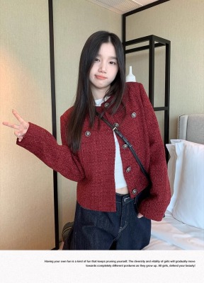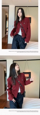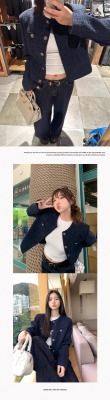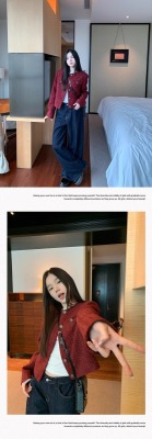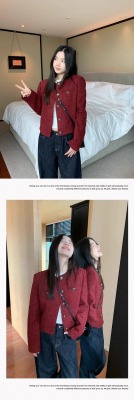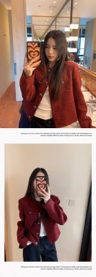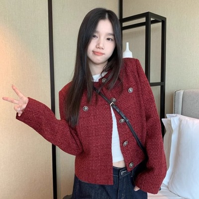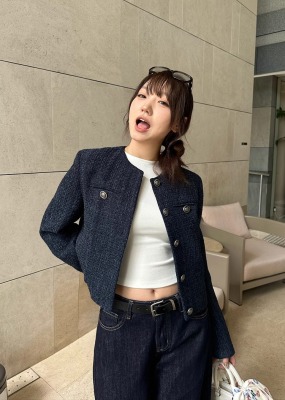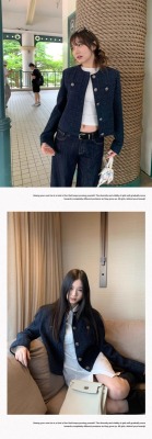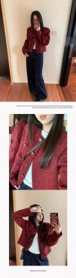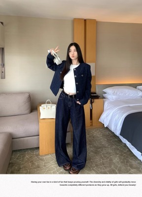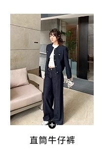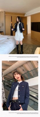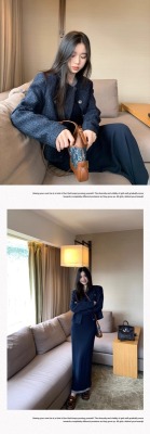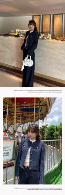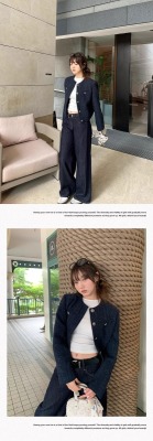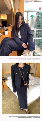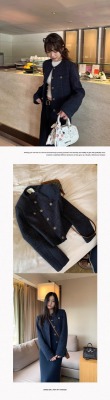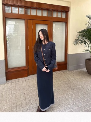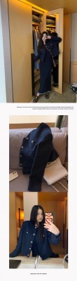 Navy blue retro high-end loose long-sleeved top casual style trendy short cardigan jacket for women