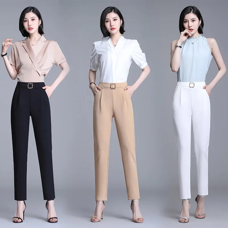 Ice silk harem pants for women in summer thin high-end casual pants high waist versatile slim drooping pants for women nine points