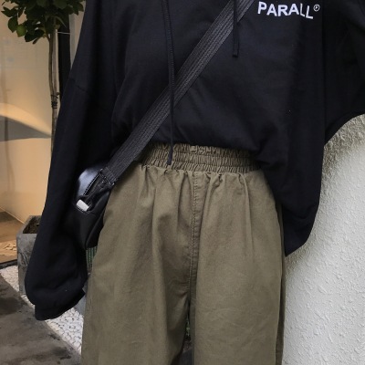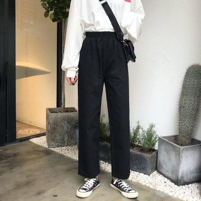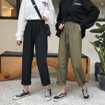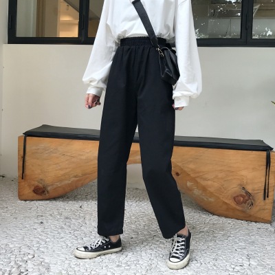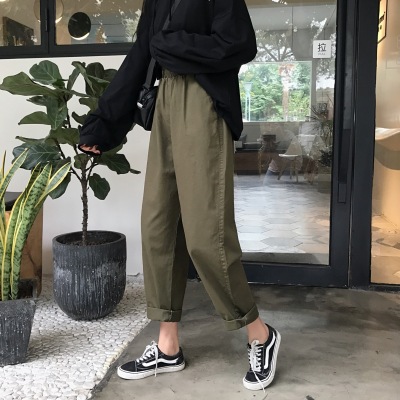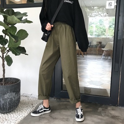 2025 Spring and Autumn Korean version of pure cotton elastic waist pants for women Chic retro loose harem pants carrot pants