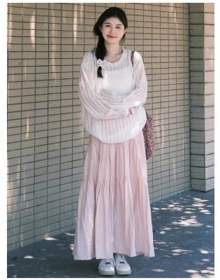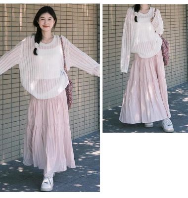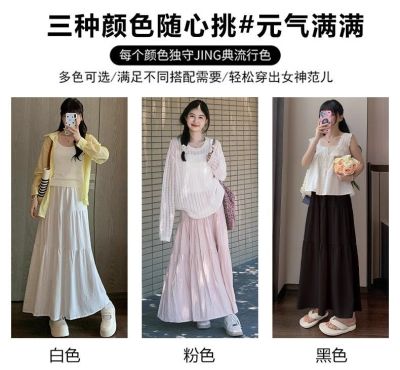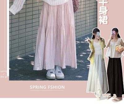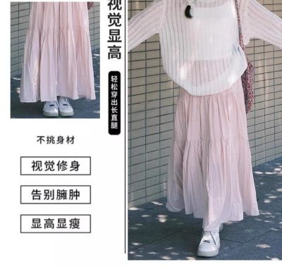 粉色蛋糕半身裙女春秋夏季2025新款高腰a字裙小個子絕美半身長裙