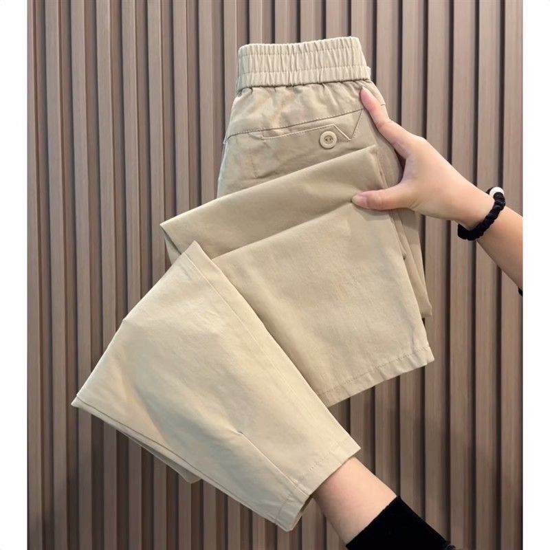 Women's short stature high-waisted loose slimming work pants, versatile stylish casual slim nine-hole harem pants for spring and summer