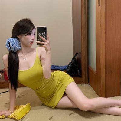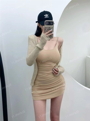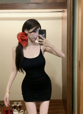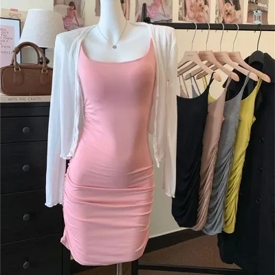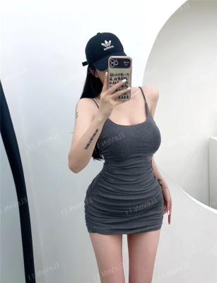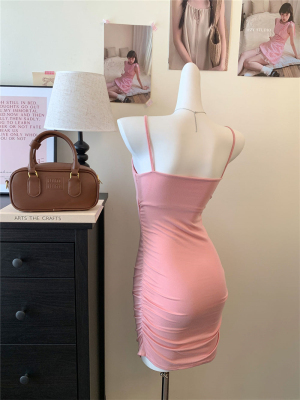Pure Desire Sexy Strap Dress with Pleated Design, Unique Slimming A-Line Mini Skirt