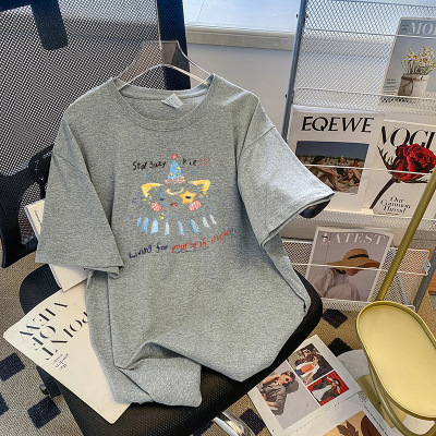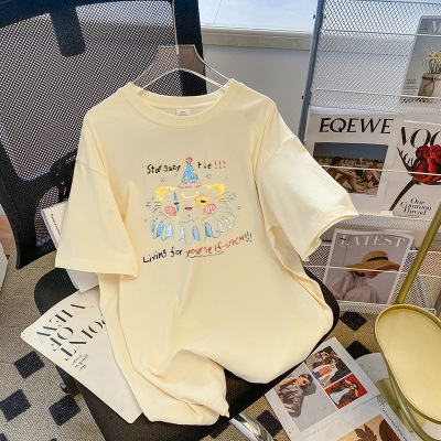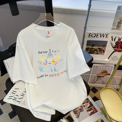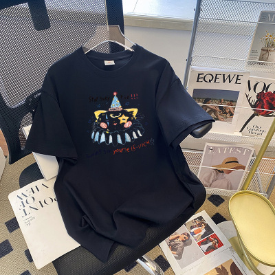 夏季新款2025韓版短袖T恤女卡通動漫印花夏裝寬鬆中長款上衣