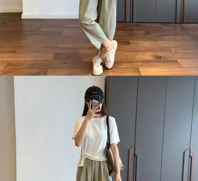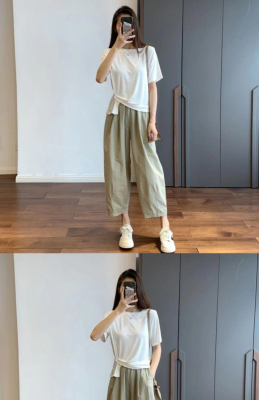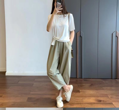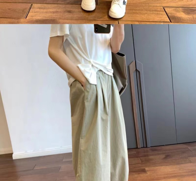 Lightweight wide-leg cropped pants for women, summer casual suit-style straight-leg trousers—perfect for petite figures, offering a slimming, Japanese-inspired workwear look this season.