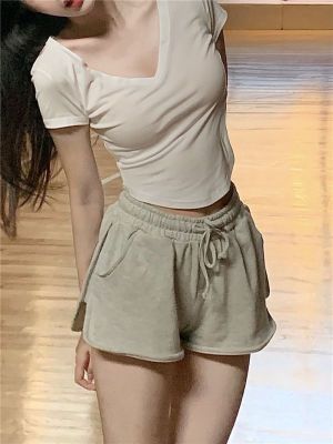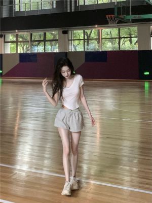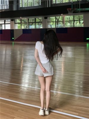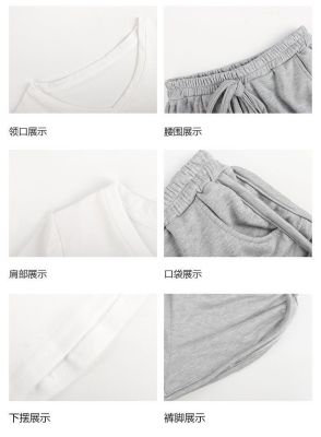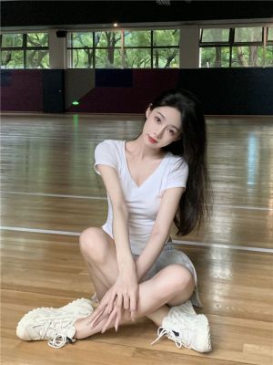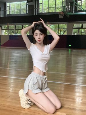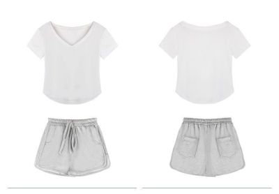 上衣92棉8氨綸 褲子6535流線棉 運動純欲套裝V領短袖T恤兩件套