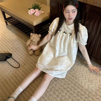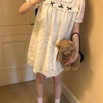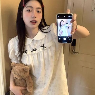 Sweet milk soft girl doll collar puff sleeve dress for women sweet small short skirt