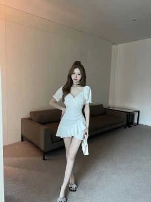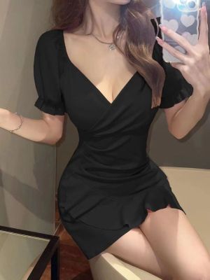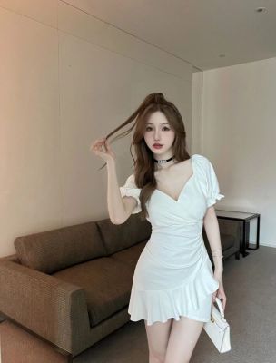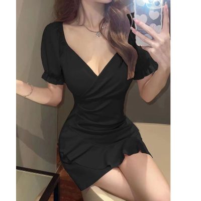 American high-end puff sleeve dress for women, summer pure sexy A-line skirt design, waist-hugging and slimming skirt