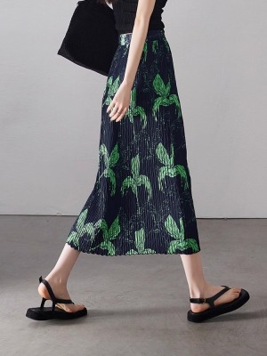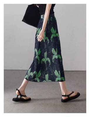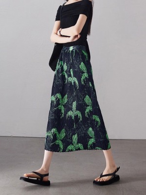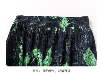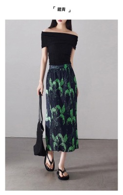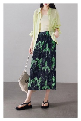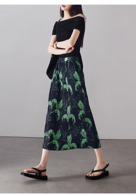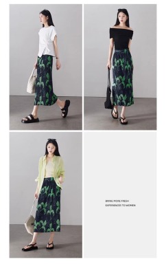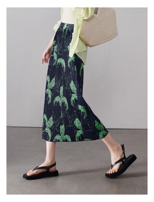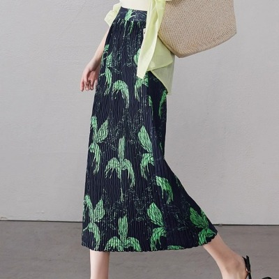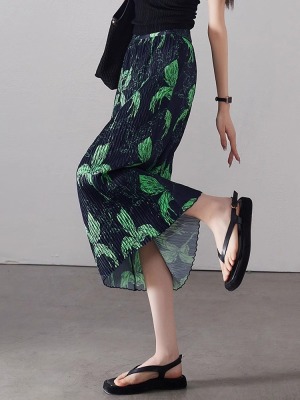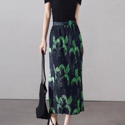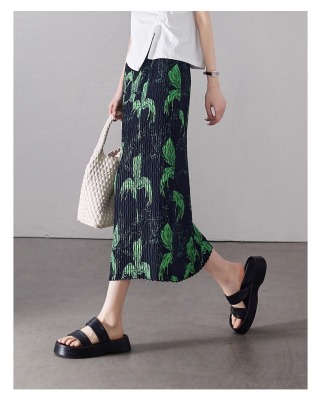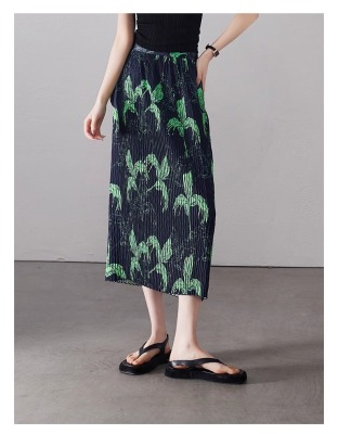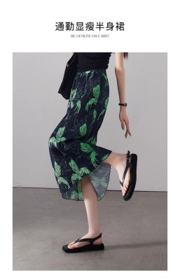 Large size pleated slit skirt for women in summer new high-waisted niche design pear-shaped A-line pleated skirt