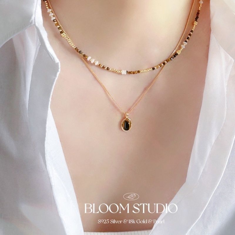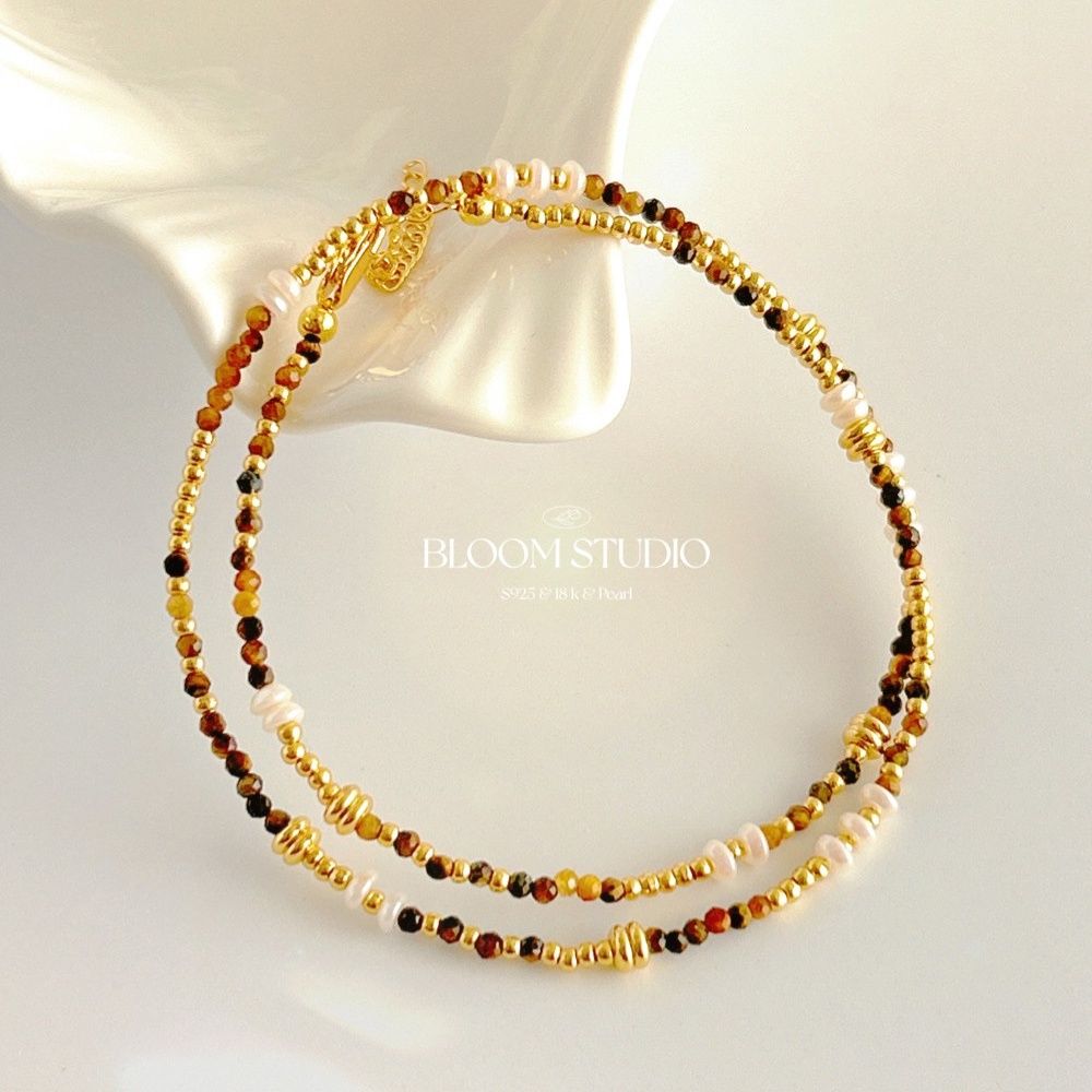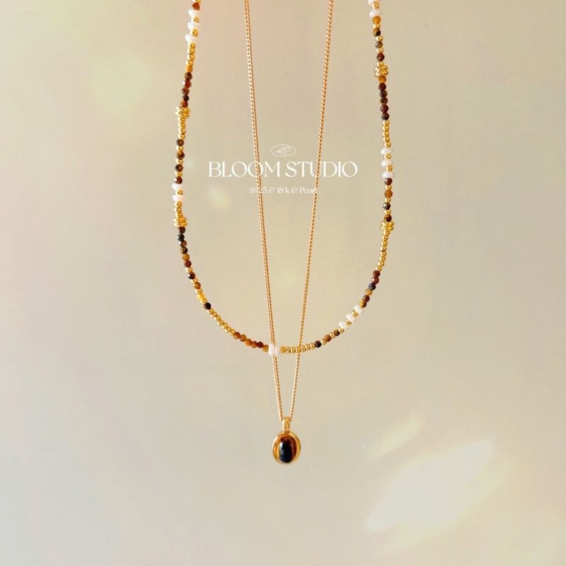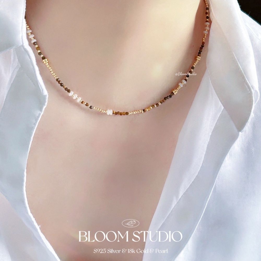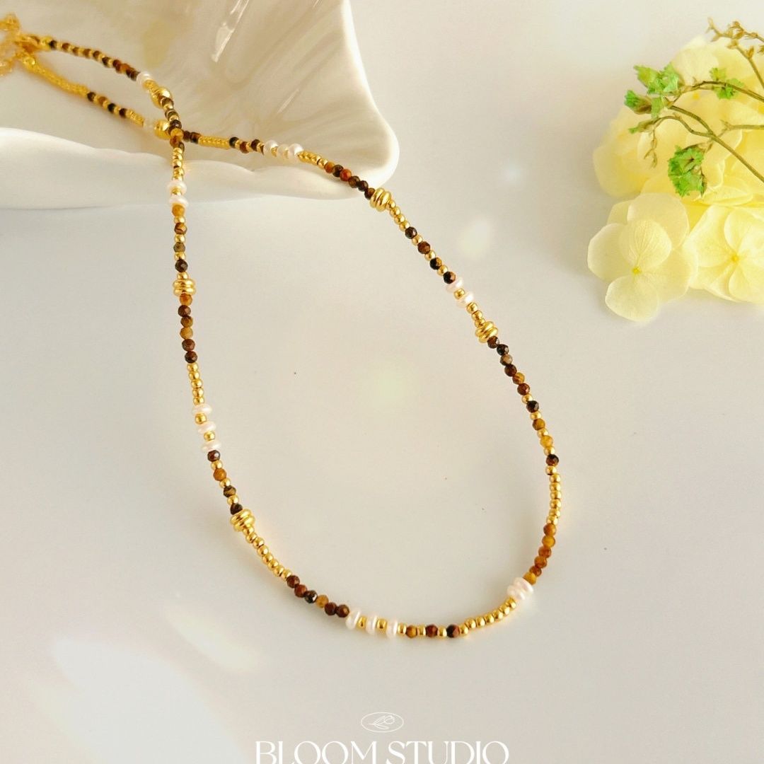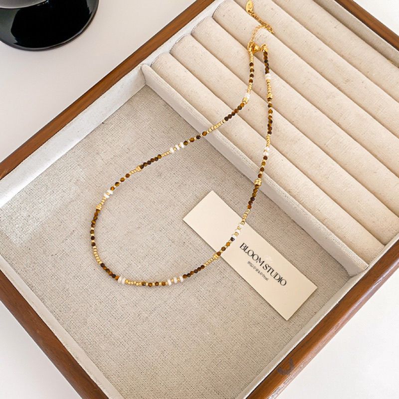 Natural tiger-eye stone faceted millet bead necklace fresh water pearl clavicle chain temperament new Chinese bracelet versatile women's style