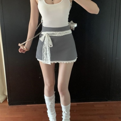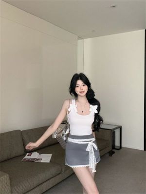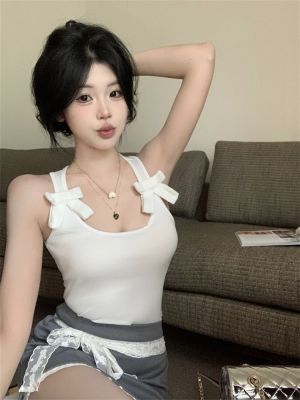 1*1 Modal chic sweet and spicy bow front shoulder suspender vest women's summer new lace splicing sexy top