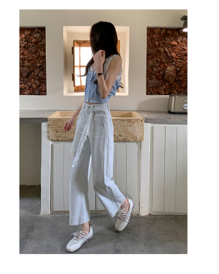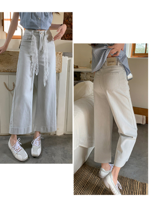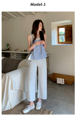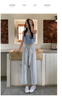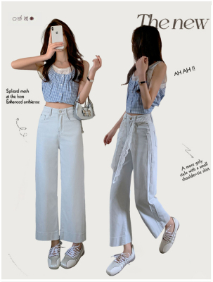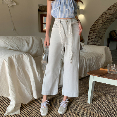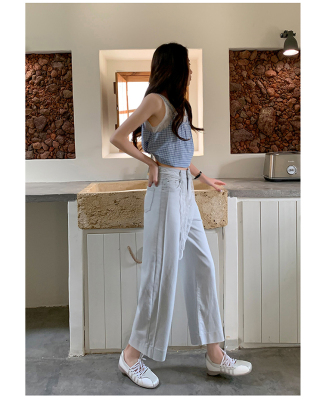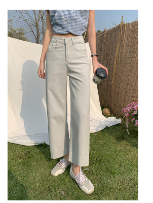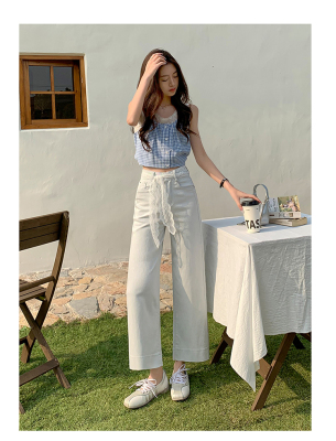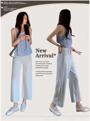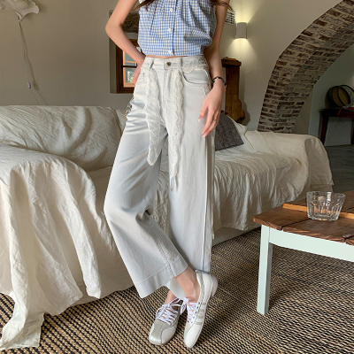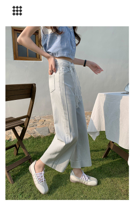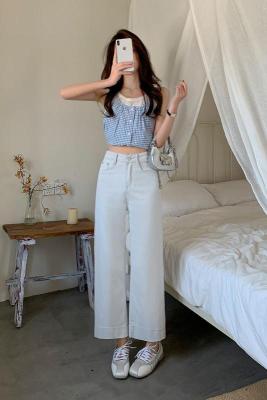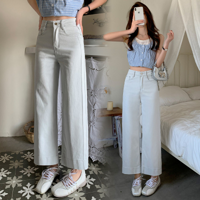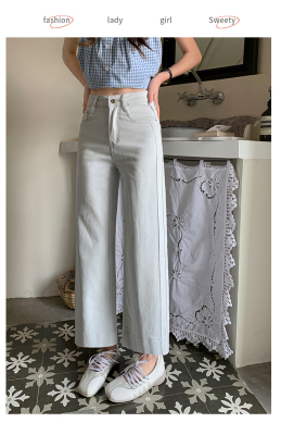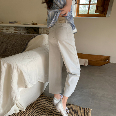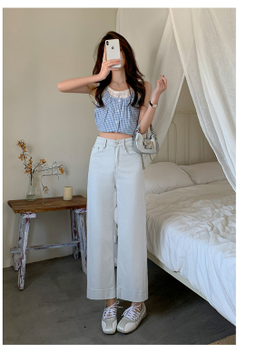 High-waisted straight jeans for women, slim and loose 2025 spring and summer new nine-point small white baguette cigarette pants