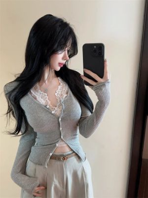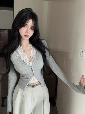 Quality slim short long-sleeved cardigan for women pure hot girl lace two-piece set