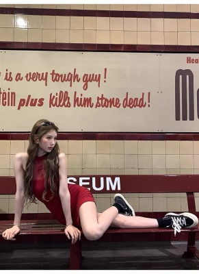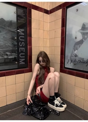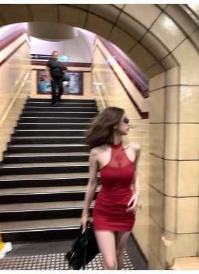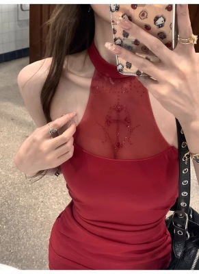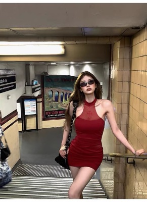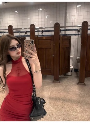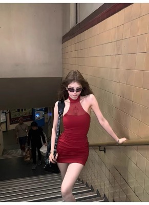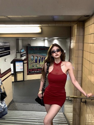 Pure Desire Design Sensibility Off-the-Shoulder Beaded Dress for Women - Summer New Sexy Fitted Waist-Cut Bodice-Hugging Red Dress