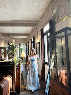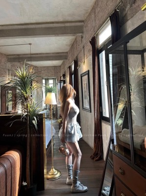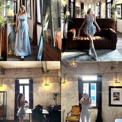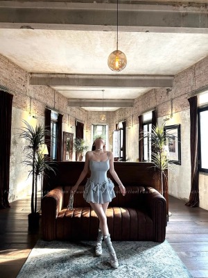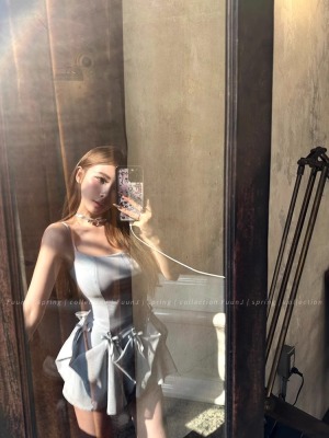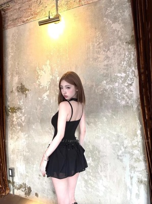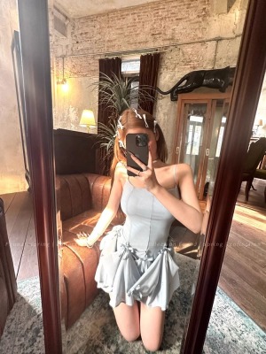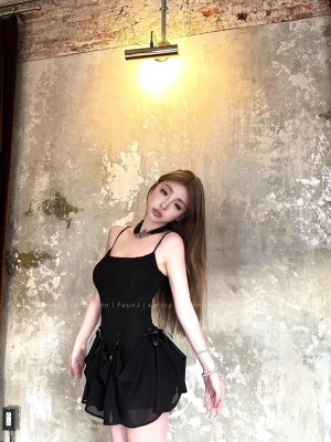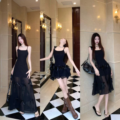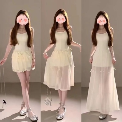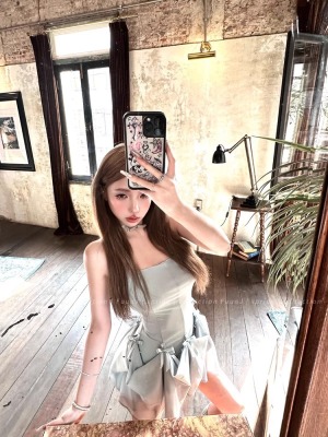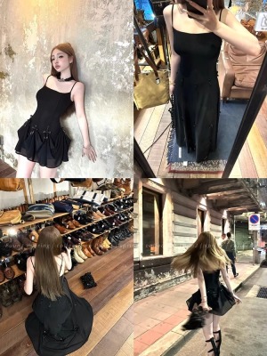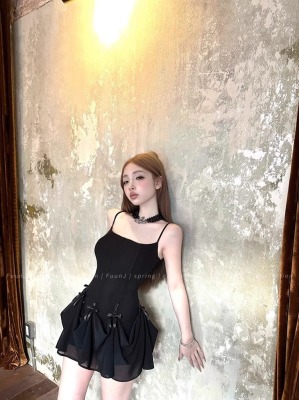 Multiple Tinni waist-hugging and slim mid-length suspender skirt for women with slim heavy industry bow design short dress