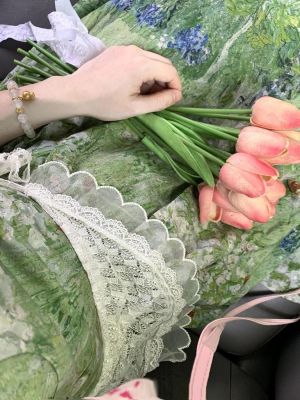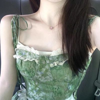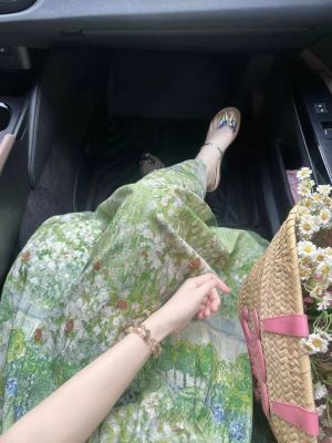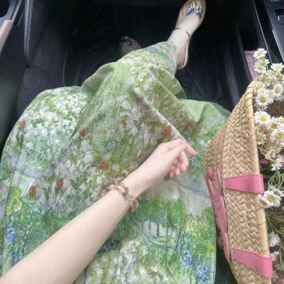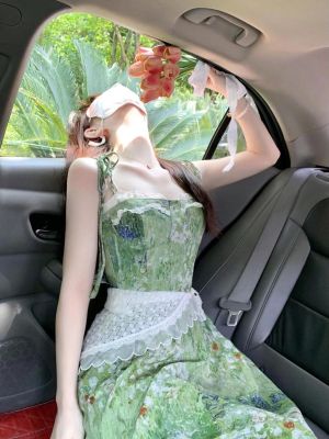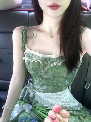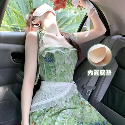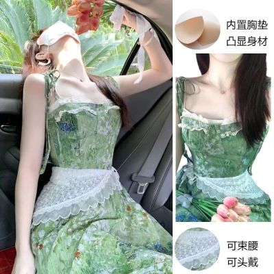 2025夏季新款穿搭一整套韓系碎花連衣裙中長款女蕾絲束腰顯瘦裙子