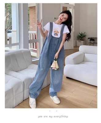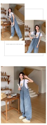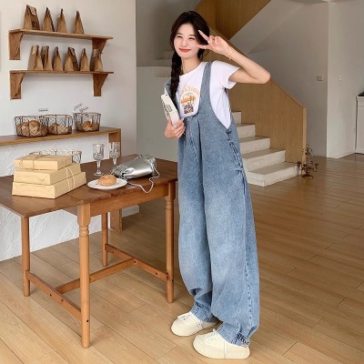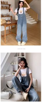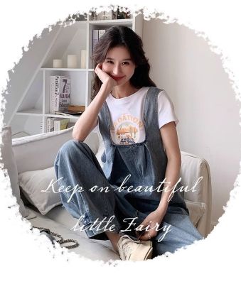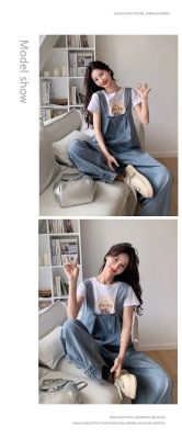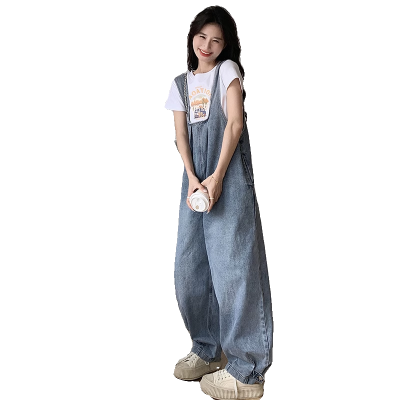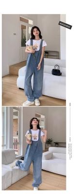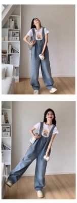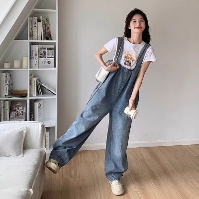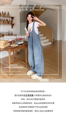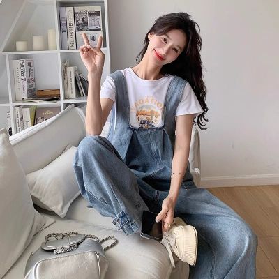 Korean version of retro denim overalls for women in spring and summer 2025 autumn new age-reducing loose slimming wide-leg jumpsuit