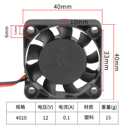 3D printer accessories extruder 4CM small cooling fan 12V 4010 PC case silent computer power supply