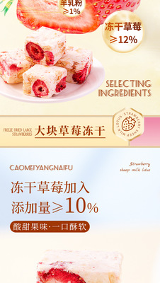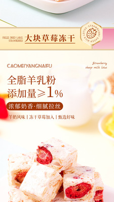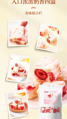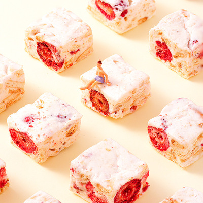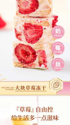 Internet-famous casual snack: Freeze-dried strawberry chips, goat milk-flavored Snowflake Milk Fudge, and Nougat candies—individually wrapped for on-the-go enjoyment.