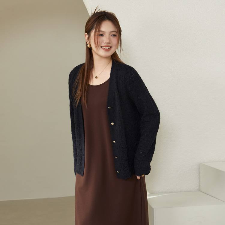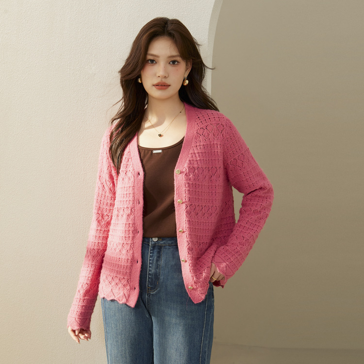 Fiber shows the plus size women's clothing elegant and casual V-neck thin knitted cardigan fat mm2024 autumn new style