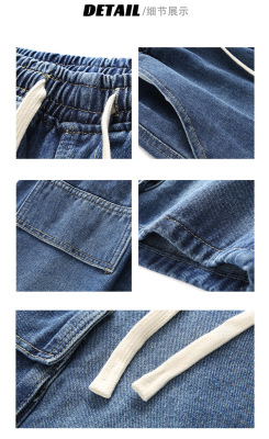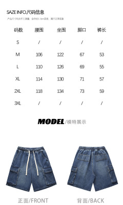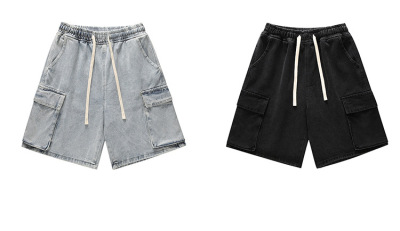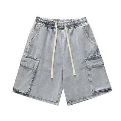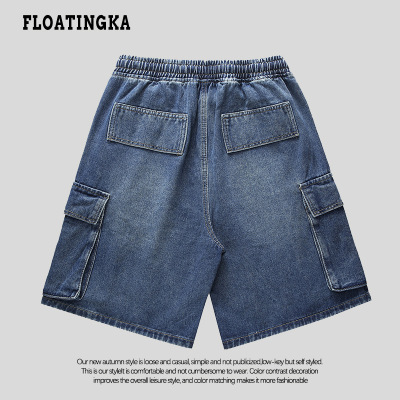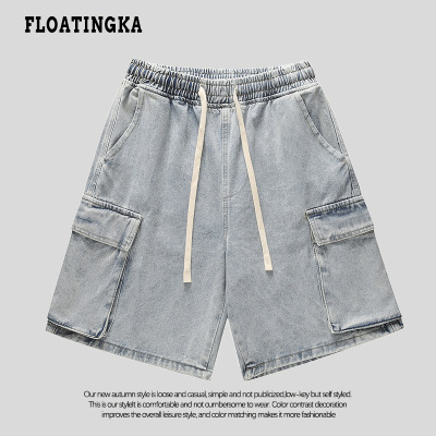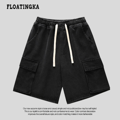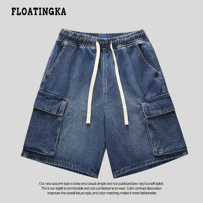 Japanese-style city boy retro denim shorts for men, summer Instagram trendy brand loose casual multi-pocket work 5-inch pants