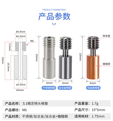 Ender3 S1 Spirit Nozzle Extension Tube Heating Block Silicone Cover Titanium Alloy Bimetallic