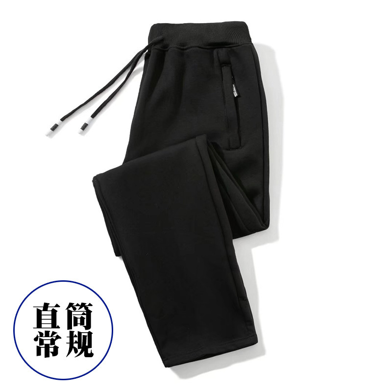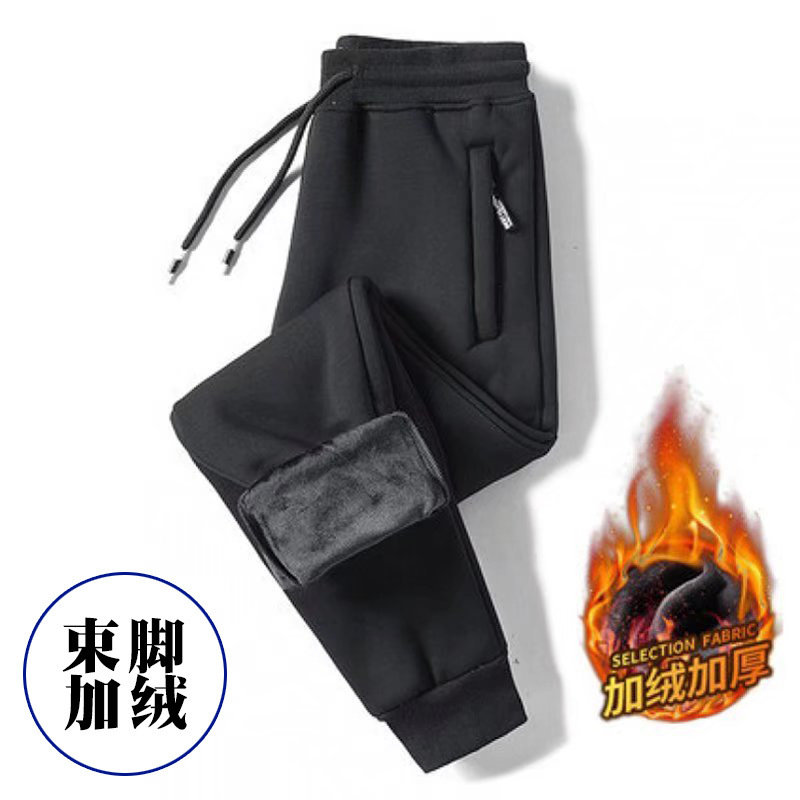 Men's Warm Fleece Lined Pants for Autumn and Winter, Small Calves, Suitable for Spring and Autumn, Loose and Thick, Casual and Sporty Straight Leg Long Pants