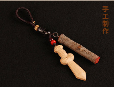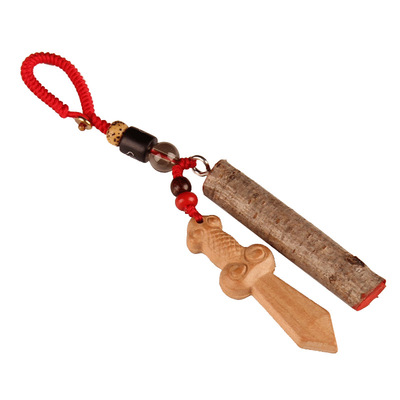 Peach wood branch peach wood sword dark brown keychain