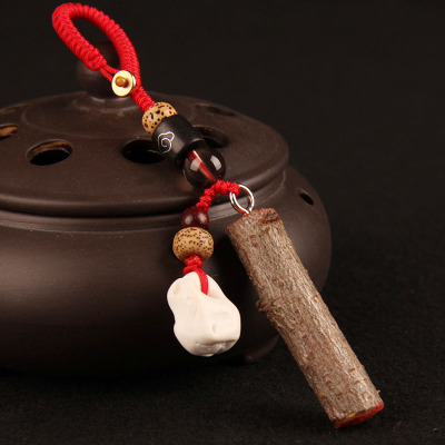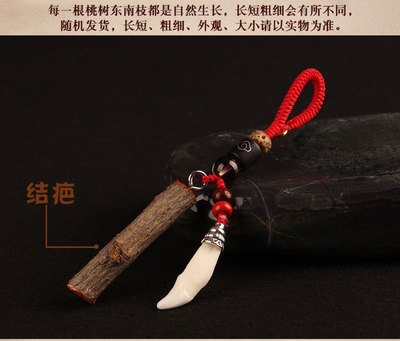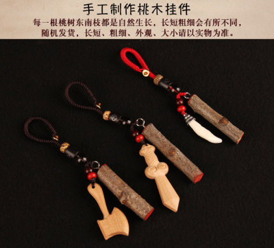 Peach wood branch peach wood knife red keychain