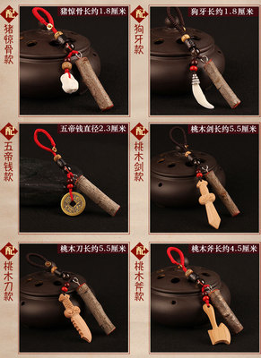 Peachwood Branch Keychain—Southeast Peach Branch, Feicheng Peach Wood Stick, Sword, Axe, Knife, Dog Tooth, Boar’s Bone Pendant for Babies