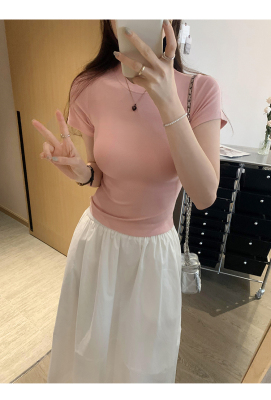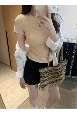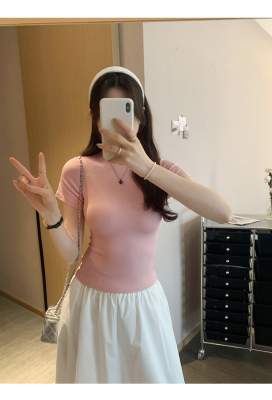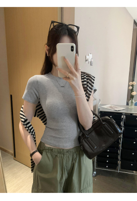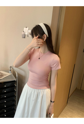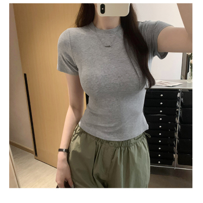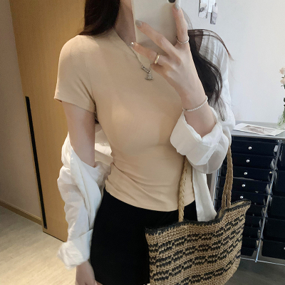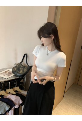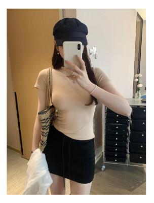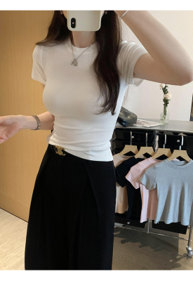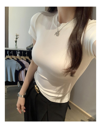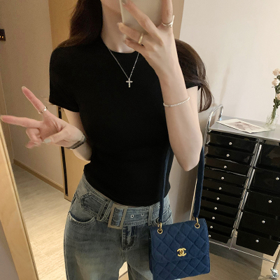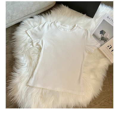 Real photos of Modal high-end short-sleeved women's fashionable age-reducing 2025 new summer threaded T-shirt summer top
