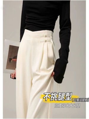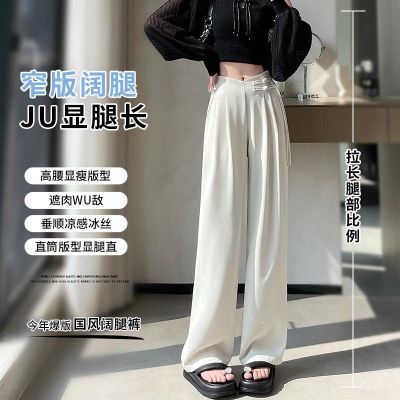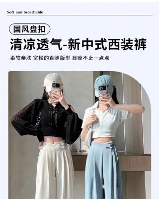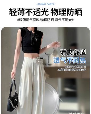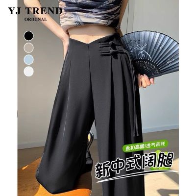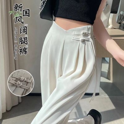 Women's Spring and Summer 2025 New Style Chinese Style National Wind Buttoned Drop Straight Leg Casual Slimming Wide Leg Pants