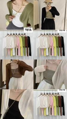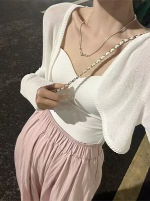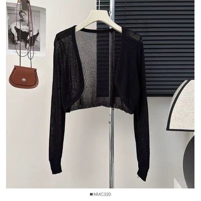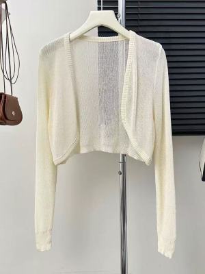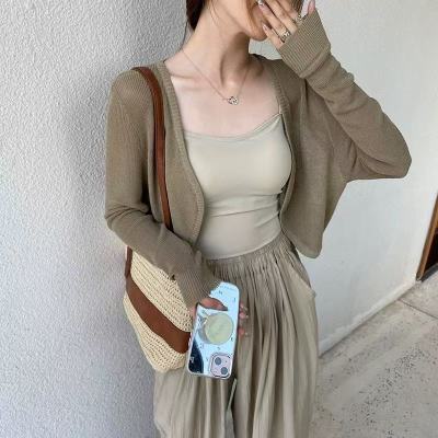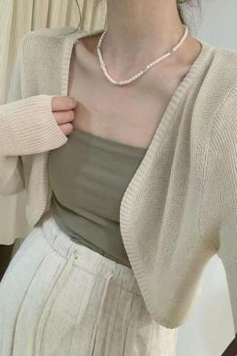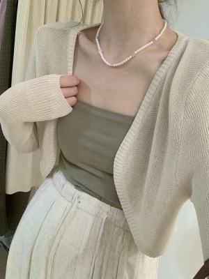 非實拍 杏色冰絲針織開衫薄款防曬罩衫短款小坎肩外搭上衣潮