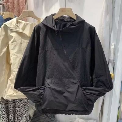 Extra large size loose casual zipper pocket hooded vest women's jacket long sleeve jacket work jacket for women