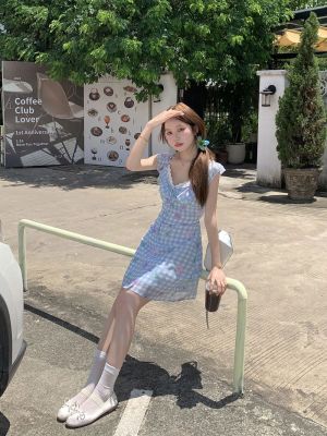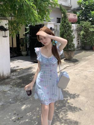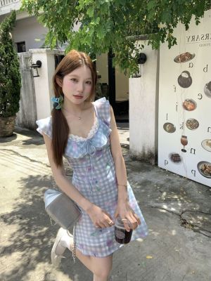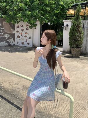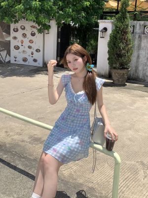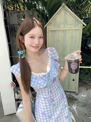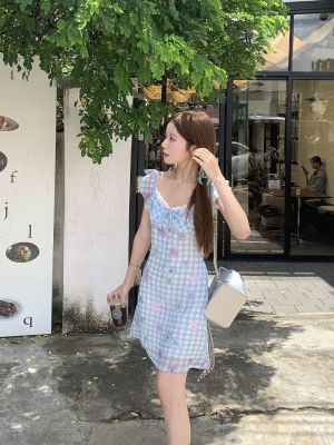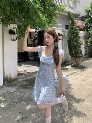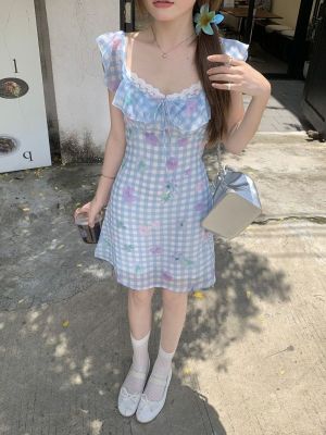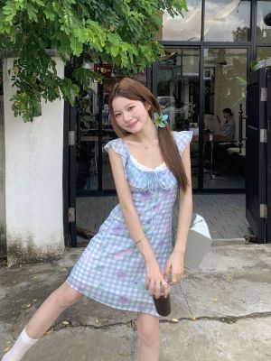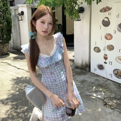 Blue plaid flower dress