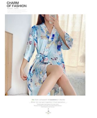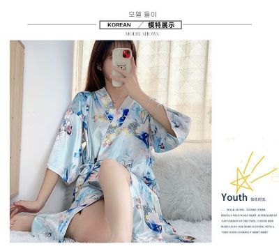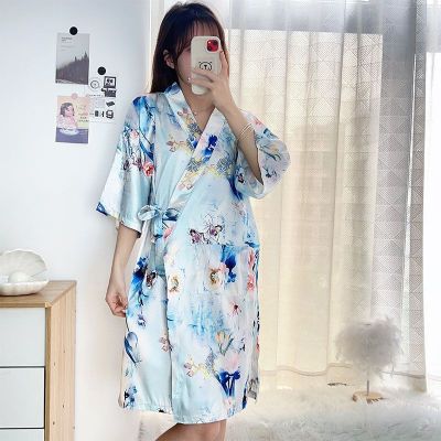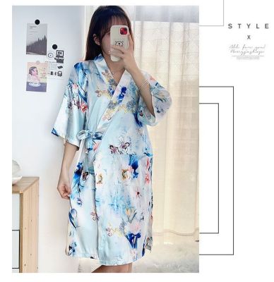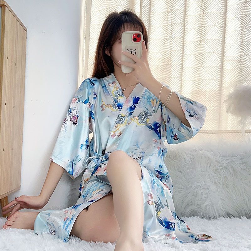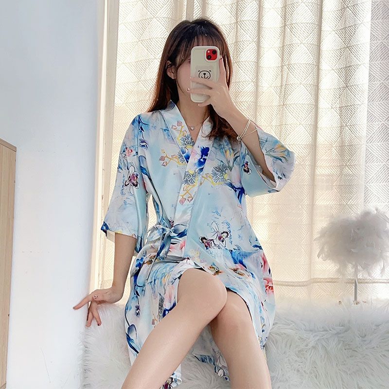 Summer imitation silk quarter sleeve kimono robe women's nightgown home clothes sexy bathrobe live broadcast