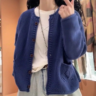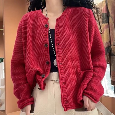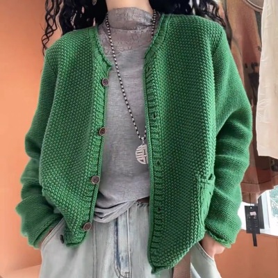 2025 spring new retro fashion women's knitted cardigan jacket casual round neck loose age-reducing top