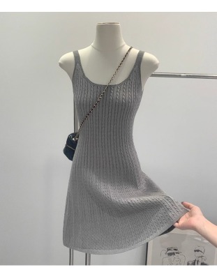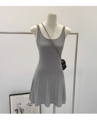 獨特漂亮初夏設計感修身針織吊帶連衣裙女2025新款夏日絕美小裙子